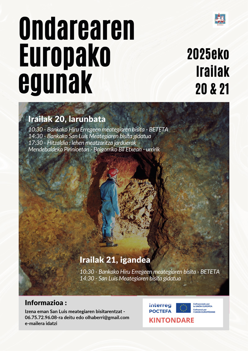 Con motivo de las Jornadas Europeas del Patrimonio, cuyo lema este año es “Patrimonio arquitectónico: ventanas al pasado, puertas al futuro, los socios del proyecto Interreg POCTEFA Kintondare han organizado diversos actos culturales para acercar a la ciudadanía el patrimonio histórico, inmaterial e industrial y minero del territorio.